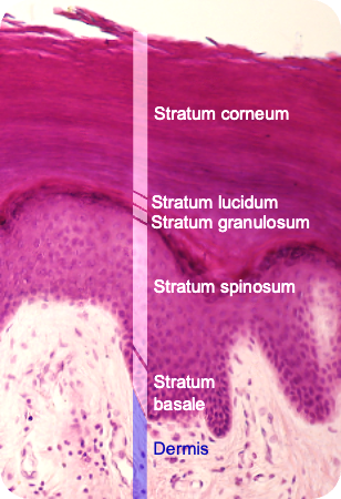 - Stratum corneum (Hornschicht): mehrere Lagen kernloser Korneozyten, kontinuierliche Abschilferung (Desquamation