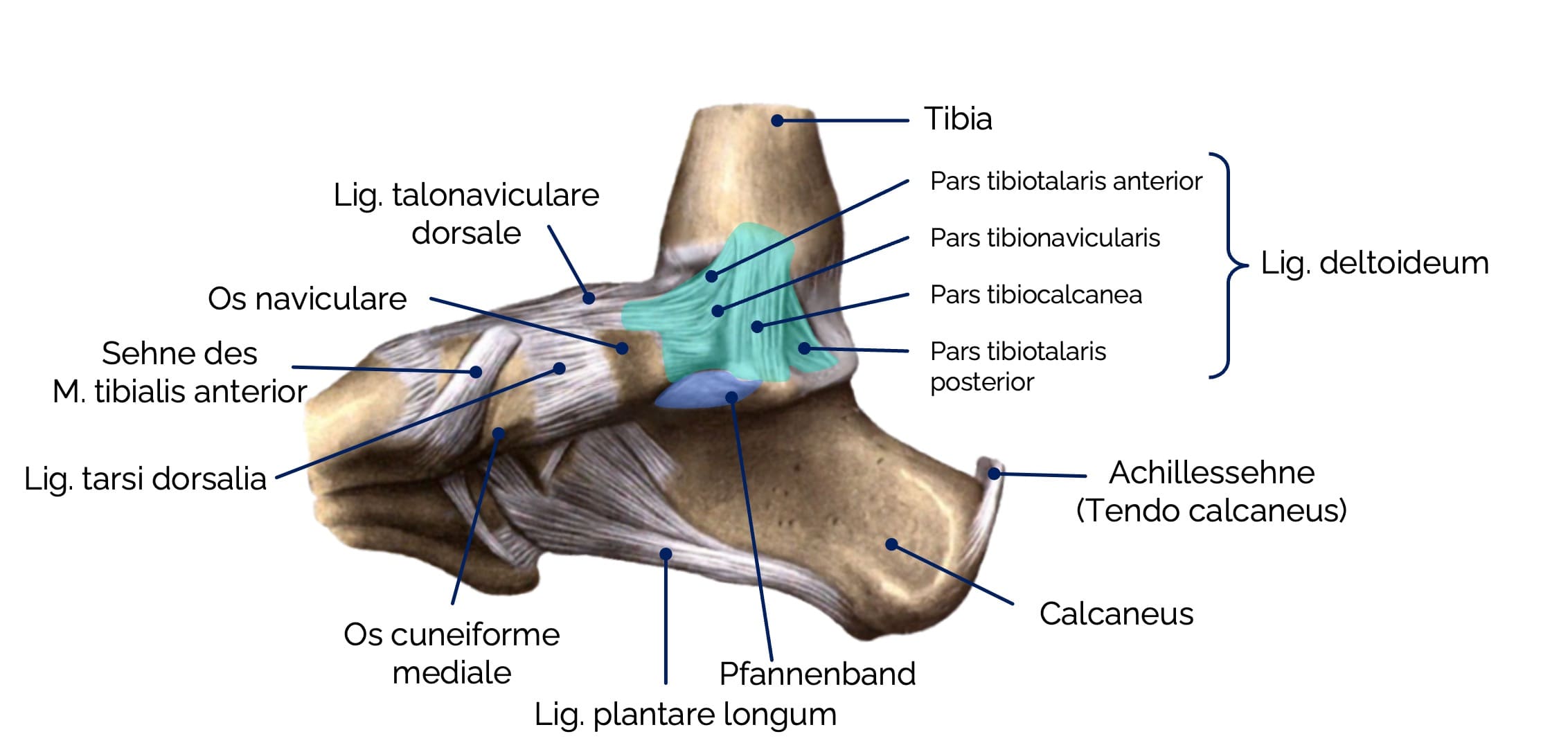 Mediale Ansicht des Bandapparats des rechten oberen Sprunggelenks