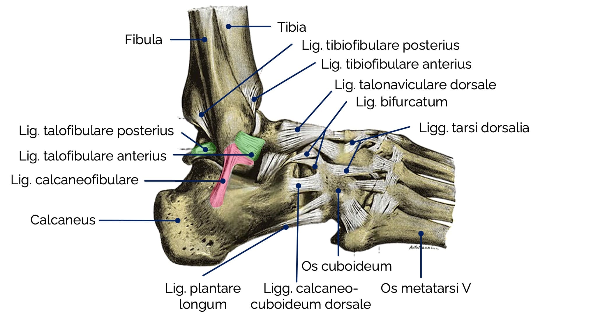 Das Sprunggelenk kann in ein oberes Sprunggelenk (Art. talocruralis) und ein unteres Sprunggelenk (Art. talotarsalis) unterteilt werden.