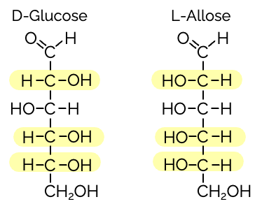 und L-Allose (Unterschiede am C2,C4 und C5)