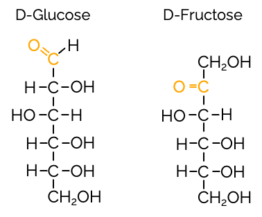 und Fructose sind beides C6H12O6, unterscheiden sich aber in der Position der Carbonylgruppe (Aldehyd bei Glucose , Keton bei Fructose)